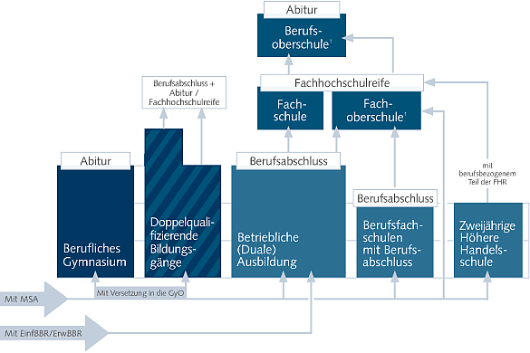 In verschiedenen beruflichen Bildungsgängen können alle allgemeinbildenden Schulabschlüsse von der Einfachen Berufsbildungsreife bis zur Allgemeinen Hochschulreife oder Fachhochschulreife erworben werden.