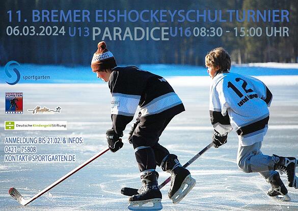Die Jagd um den Puck geht mal wieder ins Finale. An sieben Bremer Schulen konnte der Sportgarten in den vergangenen vier Monaten regelmäßigen Eishockey-Unterricht anbieten. Mit dem 11. Schul-Eishockeyturnier wird den weiterführenden Schulen für die Klassenstufen 5.-10. erneut eine Plattform geboten, um ihre sportlichen Fähigkeiten in diesem schönen Sport turniergerecht auszuspielen. Das Paradice Eislaufcenter stellt für das Turnier zwei Eisflächen zur Verfügung.