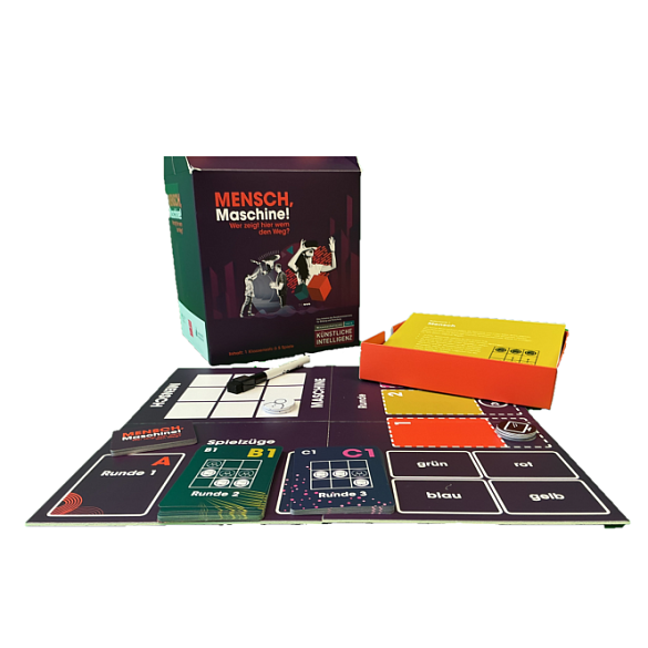 Analog lernen, wie KI funktioniert? Das geht: mit dem Spiel „Mensch, Maschine!“, das auf einem klassischen Spielbrett zeigt, wie Maschinelles Lernen aussehen kann.