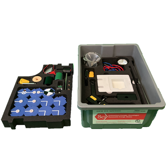 Mit dem Experimentier-Set "Erneuerbare Energie 1" können Kinder und Jugendliche erforschen, wie nachhaltige Energiegewinnung funktioniert und welche Chancen sie für die Zukunft bietet. Die Sets richten sich an Schüler:innen der Klassen 7 bis 10. Die 17 Versuche behandeln unter anderem die Themenkomplexe Solarenergie oder Energiegewinnung durch Umgebungswärme.