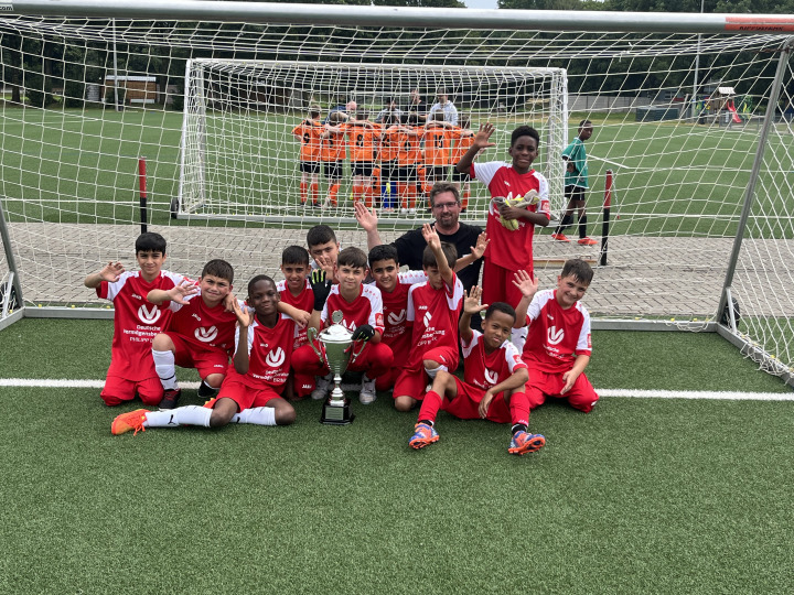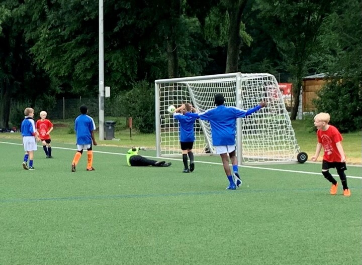 Schon während der Vorrunden, die auf den Bezirkssportanlagen der Regionen ausgetragen worden waren, gab es manchen Jubel, aber auch manchen Frust, der allerdings schnell verflog. Spaß am Fußball hatten augenscheinlich alle jungen Kicker:innen, nicht nur weil das Wetter gut mitspielte. Dies änderte sich in der Nacht zum und am Morgen des Finaltags. Es hatte wie aus Eimern geschüttet und regnete noch. Würde das Finale überhaupt stattfinden können? Am Morgen dann die Entwarnung: die Kunstrasenplätze im Rollsportstadion waren bespielbar.