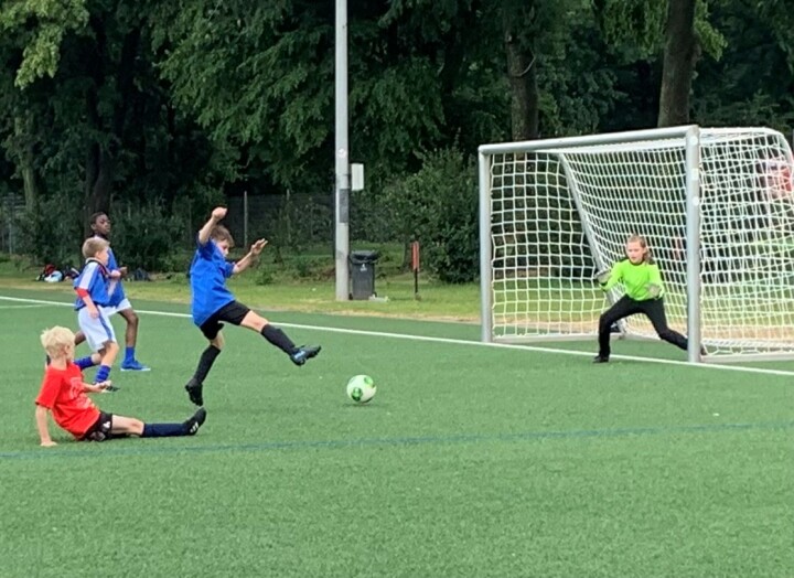 Pünktlich fanden sich die besten zehn Jungen- und fünf Mädchen-Teams der Vorrunden zum Finale ein. Es regnete zwar noch ein wenig, das interessierte die starken Fußballer:innen aber nicht. Sie zeigten ihr ganzes Können. Freistöße und Ecken, Dribblings und Flanken – was für tolle Vorstellungen und spannende Spiele, manche hochemotional ohne unfair zu werden.