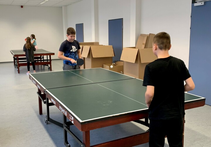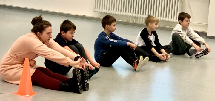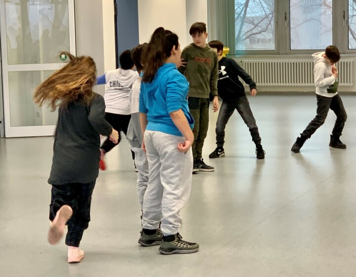 Natürlich gehört auch das richtige Aufwärmen und Dehnen zum Programm. „Wir haben hier noch nicht so viele Möglichkeiten. Das Laufspiel Katz und Maus funktioniert sehr gut, Softballspiele, Fitness und auch Tischtennis”, erklärt Unger. Letzteres wäre ohne die Hilfe der Osterholzer Oberschule Albert-Einstein nicht möglich gewesen. „Die Schulleiterin war sofort bereit, zwei Platten zur Verfügung zu stellen. Der Transport hat zwar etwas gedauert und auch die bestellten Netze sind noch nicht vorhanden, dennoch sind die Platten schon im Einsatz. Es ist toll, was gemeinsam möglich ist. Die Hilfsbereitschaft ist groß“, so Schulsportreferentin Annette Kemp. Und zum Jahresabschluss wurde der große Bewegungsraum dann auch für Tanz genutzt. Etwas Ruhe und Spaß in schwierigen Zeiten.
