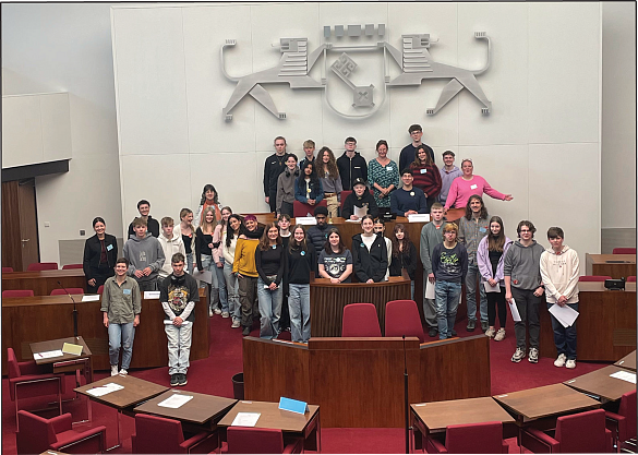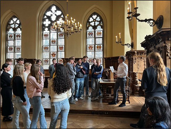 Die Welterbetagung startete am 22.04.25 im Rathaus. 32 Schüler:innen von vier UNESCO Projektschulen (Wilhelm-Kaisen-Oberschule (WKO), Gesamtschule Bremen Mitte (GSM), Oberschule an der Lerchenstraße (OSL), Kaufmännische Lehranstalten Bremerhaven (KLA)), ihre Lehrer:innen, Beteiligte aus Förderverein Welterbe, der Bremischen Bürgerschaft und dem Kunsthaus KUBO e.V. trafen sich zum Start im Foyer der Bremischen Bürgerschaft. Nach der Begrüßung und der Aufteilung in die drei Workshop Gruppen startete die Rallye durch die Bürgerschaft mit anschließendem Planspiel im Plenarsaal unter Beteiligung der bildungspolitischen Sprecher:innen der Fraktionen. Diskutiert wurde der aktuell eingereichte Gesetzesentwurf „Es soll eine Stunde mehr Deutschunterricht an Bremer Grundschulen geben“.