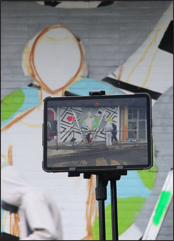 Entstanden ist ein Gemeinschaftsbild (ca. 3,5 x 5 Meter) inhaltlich basierend auf Justitia, aber in den aktuellen Kontext geholt in Form einer Bi-Poc.
