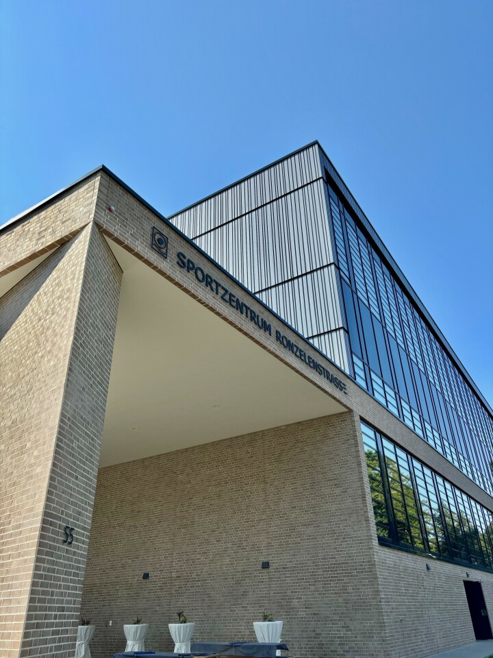 Wahnsinnig beeindruckend! Dies gilt sowohl Baugeschwindigkeit, als auch für die Ausmaße und das Interieur des neuen Sportzentrums der sportbetonten Oberschule an der Ronzelenstraße. In der mehr als 20 Meter hohen Sportstätte sind zwei Hallen mit insgesamt sechs Feldern – inklusive Trennvorrichtungen – auf zwei Etagen entstanden. Das Obergeschoss ist für den Schul- und Vereinssport vorgesehen, die untere Halle ist bundesligatauglich mit Besuchertribüne für bis zu 300 Zuschauer:innen ausgestattet. Vor allem hochklassige Spiele im Handball, Volleyball und Hockey werden hier künftig ausgetragen und zu sehen sein. Festinstallierte Kameras machen eine „Spielüberwachung“, Livestreams und ggf. auch Fernsehübertragungen aus der unteren Halle möglich. Zusätzlich sind in einem viergeschossigen Gebäudeteil zwei Lernflächen für Sporttheorie, ein Kraftraum sowie weitere Nebenräume integriert. Alles ist auf dem neuesten Stand der Technik und zum allergrößten Teil barrierefrei. Die Senatorin für Kinder und Bildung hatte schon 2018 mit einem Aufschlag den Weg geebnet, im Oktober 2021 hatten der Senat und die Deputation den Bau beschlossen – finanziert vornehmlich über den städtischen Bildungshaushalt.
