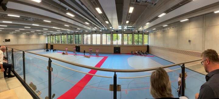 Die Freude über den Neubau ist riesig. Schulleiterin Hermi Auner, Leistungssportkoordinator Harald Wolf und weitere Akteur:innen hatten sich mit dem großen Ganzen und auch vielen Detailfragen in vielen „Über-„-Stunden auseinandersetzen müssen – das Ergebnis belegt: es hat sich gelohnt.