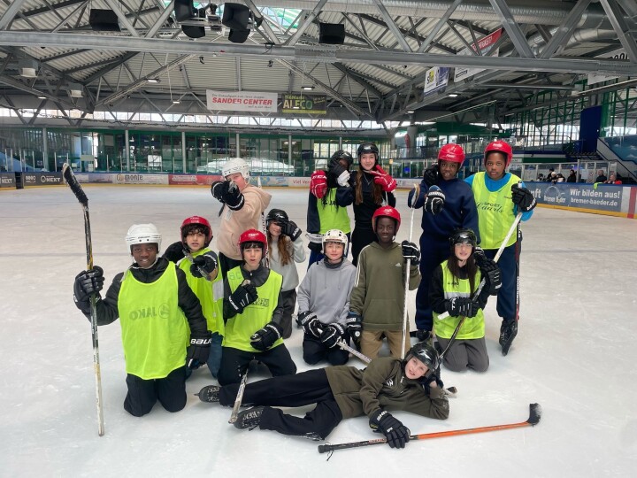Es ist schon mächtig cool, wie Bremens Kufenflitzer aus Oberschulen und Gymnasien dem Puck hinterher jagen. Nach fünf Monaten AG-Unterricht traten zum Abschluss der Saison 14 Eishockey-Teams im Waller Paradice an, um Sieger:innen im Schulcup, organisiert vom Sportgarten, auszuspielen. Über fünf Stunden lang gab es packende Duelle, Emotionen und maximalen Einsatz zu erleben. In der Altersklasse U13 holte das Team der GSO einen tollen 3. Platz. Im Finale überzeugte das Team Blockdiek (aus mehreren Schulen) gegen das der GSM. In dem von guten Abwehren gekennzeichneten Spiel reichte den Blockdieker:innen ein Tor zum Sieg.