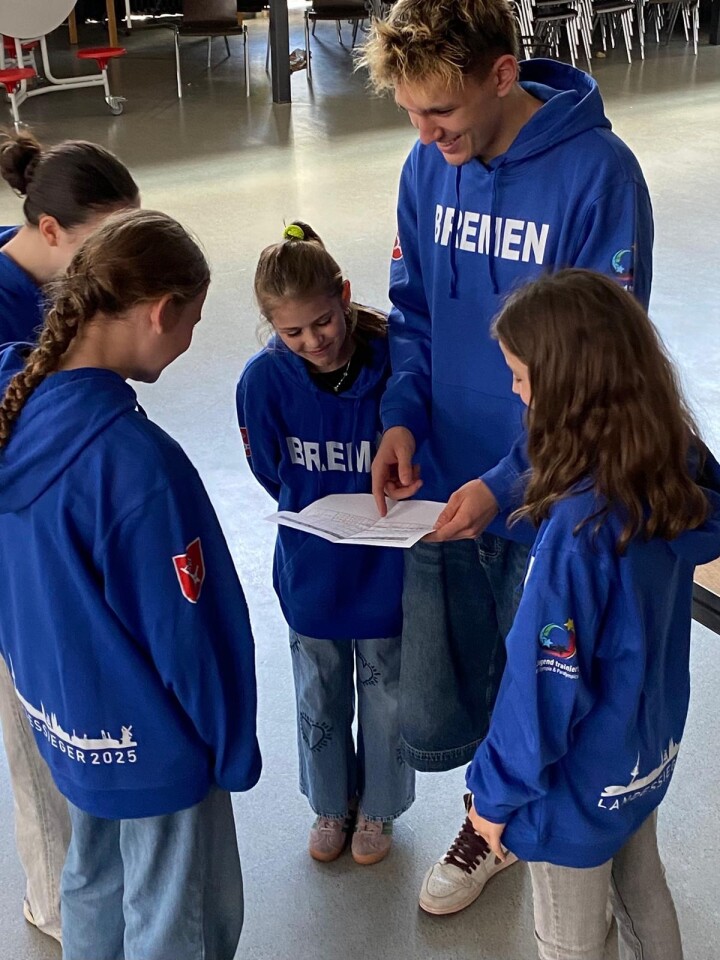 Die Delegation des kleinsten Bundeslandes stellt insgesamt 203 Sportler:innen und Betreuende in 21 Teams, aus sieben Schulen (Gymnasien Hermann Böse, Horn, Kippenberg, Links der Weser, Oberschule Ronzelenstraße, Gesamtschule Ost (GSO) sowie die Freie evangelische Bekenntnisschule, FEBB). Die jungen Sportler:innen sind in sechs Sportarten (Badminton, Basketball, Gerätturnen, Handball, Tischtennis, Volleyball) unterwegs. Anreise mit dem Zug ist am Sonntag, natürlich mit dem richtigen Dress, den obligatorischen Hoodies der Landessieger (dieses mal in kräftigem Blau).