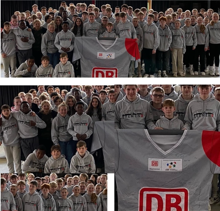 Die Delegation des kleinsten Bundeslandes stellt rund 200 Sportler:innen und Betreuende, 17 Teams aus sieben Schulen kämpfen in sieben Sportarten um die Plätze. Heute ging’s mit dem Zug Richtung Hauptstadt. Natürlich mit dem richtigen Dress, den obligatorischen Hoodies, die die Landessieger von der Senatorin für Kinder und Bildung, SKB (mit neuem Logo, Danke an Symon Jürgensen) geschenkt bekommen.