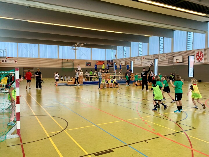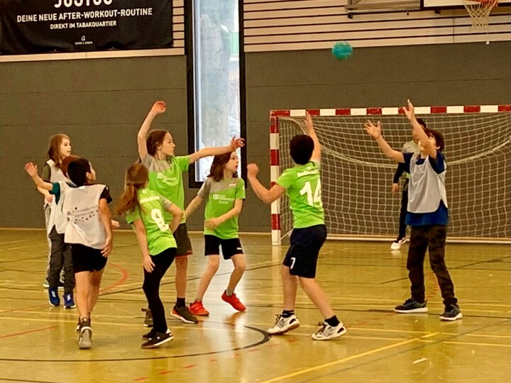 Nicht nur die Handball-Nationalmannschaft der Männer zeigt während der Europameisterschaft, warum dieser Sport so viele Menschen begeistert. Geniale Paraden und starke Würfe waren auch bei der Handball-Minimeisterschaft der Bremer Grundschulen zu sehen. 16 Teams aus neun Schulen zeigten ihr Können, feuerten ihre Spieler:innen lautstark an und sorgten in den beiden Hallen der MZH Roter Sand für mächtig Trubel. Zuvor hatten die Teams im Sportunterricht und in AGs hart gearbeitet. „Wir haben wirklich viel trainiert und geworfen. Ich glaube, deshalb sind wir ganz gut. Aber auch die anderen sind stark. Nun muss ich aber los, wir spielen gleich gegen Burgdamm “, sagt ein junges Handball-Talent aus der Grundschule Rechtenfleter Straße und saust davon. Natürlich wurden die Minimeisterschaften auch feierlich eröffnet.