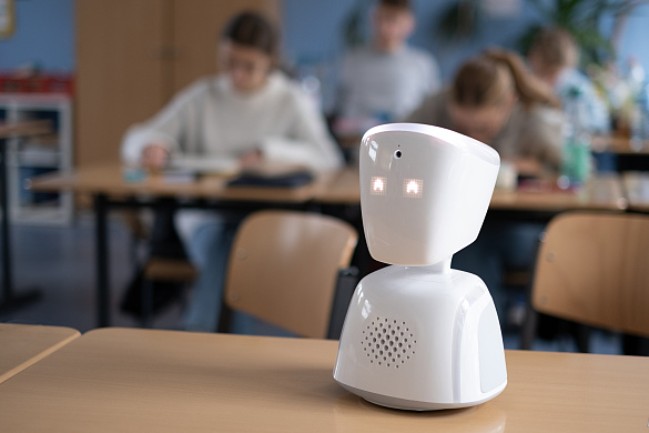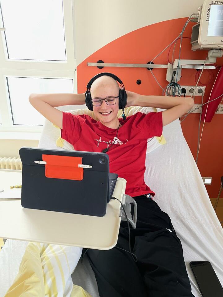 Linus (16) nimmt mit einem Schulavatar am Unterricht teil. Aufgrund einer schweren Erkrankung kann er körperlich nicht im Klassenraum anwesend sein. Der Schulavatar, ein sogenannter Telepräsenzroboter, steht an Linus Platz und baut eine Videokonferenz zu ihm auf. Über Raummikrofone kann er alles hören, was in der Klasse gesprochen wird und mit Hilfe der Kamera, die in der Stirn des Avatars verbaut ist, kann er verfolgen, was in der Klasse passiert. Linus bedient den Avatar aus dem Bett im Klinikum Bremen Mitte mit seinem schulischen iPad. Er kann den Kopf des Avatars heben und senken und den ganzen Avatar um 360° drehen. So behält er gut den Überblick über das Geschehen in der Klasse. Der Avatar hat Augen in Form von LEDs, über die Linus Gefühle ausdrücken kann. Wenn er sich melden möchte, beginnt der Kopf zu blinken, wenn er seine Ruhe haben und passiv bleiben will, kann er den Kopf blau leuchten lassen.