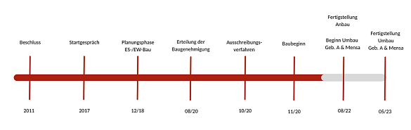 Die Umstrukturierung des Standortes erfolgt in mehreren Bauabschnitten. In ersten Bauabschnitten wurden die bestehenden Klassentrakte saniert und für den Oberschulbetreib bedarfsgerecht hergerichtet. Im Jahr 2017 wurde als 3.Bauabschnitt ein zusätzliches Jahrgangshaus fertiggestellt. Seit 2016 laufen die Planungen für den Anbau mit neuen Räumlichkeiten für die Verwaltung der Schule sowie einer Lehrküche. In diesem Zuge wird auch die Mensa den Bedarfen angepasst.