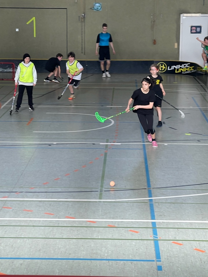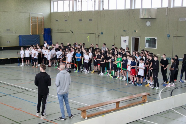 Mehr als zehn Jahre hat es gedauert, in diesem Jahr war es wieder so weit. 15 Mannschaften spielten in drei Alterskategorien (U14, U16, U18) um den Floorball (Unihockey) Schulcup. Mit viel Enthusiasmus und Können jagten die Spieler:innen dem Ball hinterher und versenkten ihn geschickt ins Tor. In der Altersklasse U14 setzte sich das Team 2 der OS Rockwinkel gegen Team 2 der OS Wilhelm Kaisen mit 4:1 durch. Beide Mannschaften hatten in der Gruppenphase mit jeweils drei Siegen geglänzt und in der K.O-Phase ebenso überzeugt.