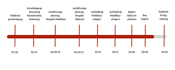 Der im südöstlichen Grundstückteil befindliche Bestand wird um einen Gebäudewinkel ergänzt, der am bestehenden Haupteingang andockt und sich in nordwestlicher Richtung erstreckt. Hierdurch erhält die Schule einen Neubau, der am Baumschulenweg eine sichtbare, baukörperliche Adresse für die Schule ergibt. Vom zentralen Eingangsfoyer aus können alle Nutzungsbereiche des Alt- und Neubaus auf kurzem Weg erschlossen werden. Die Schule ist als zweigeschossiger Baukörper ausgelegt, der durch eine differenzierte Dachlandschaft gegliedert wird. Mit dem kompakten Neubau soll das Selbstverständnis der »Schule im Grünen« gestärkt werden.