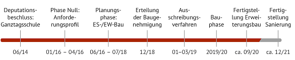 Die Gröpelinger Grundschule entwickelt sich zu einer gebundenen Ganztagsschule mit W+E-Beschulung. Hierfür wird an das bestehende Gebäude ein zweigeschossiger Neubau angebaut. Er besteht aus einem lang gestreckten Baukörper, der als Unterrichtstrakt eingerichtet wird und einem quer dazu stehenden Kopfbau. Hier werden eine Bibliothek und eine Mensa eingerichtet. Ihr großer Speisesaal soll auch für öffentliche Veranstaltungen außerhalb des Schulbetriebs genutzt werden können. So möchte sich die Schule besser in den Stadtteil einbinden und sich für dessen Bewohnerinnen und Bewohner öffnen.